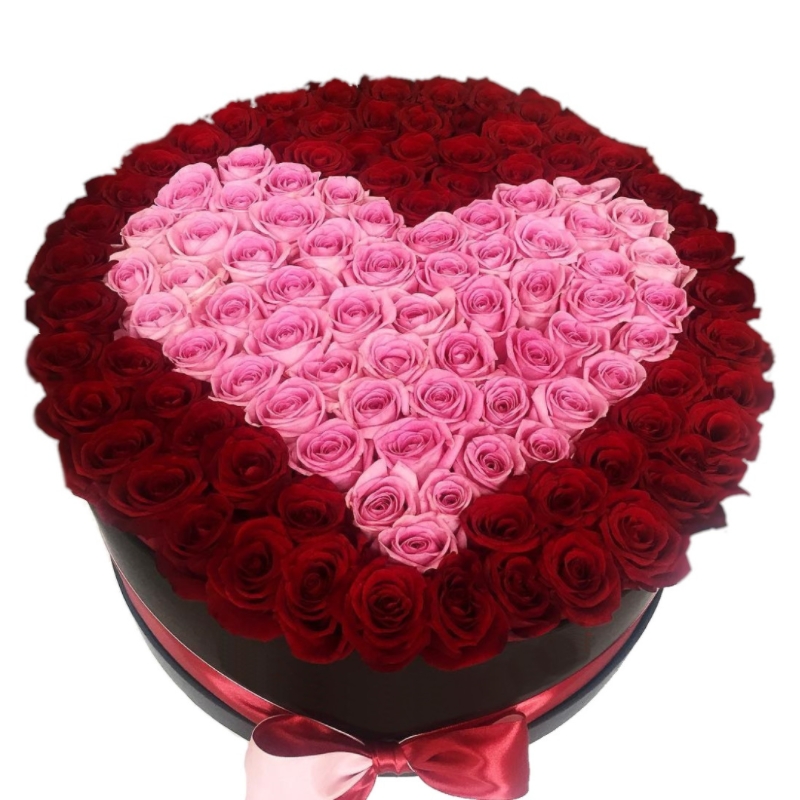 101 красная и розовая роза, коробка.